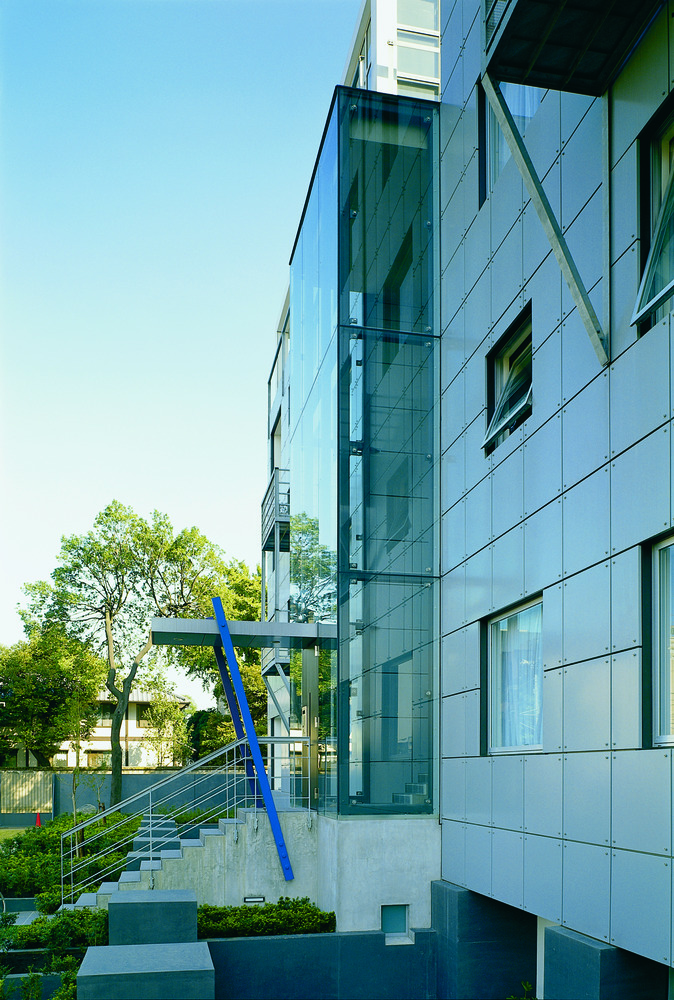 The use of component fabricated claddings of stainless steel, aluminium and bolted steel sitting on a granite and black concrete base, results in an assertively contemporary image for Australia’s diplomatic mission in Tokyo.