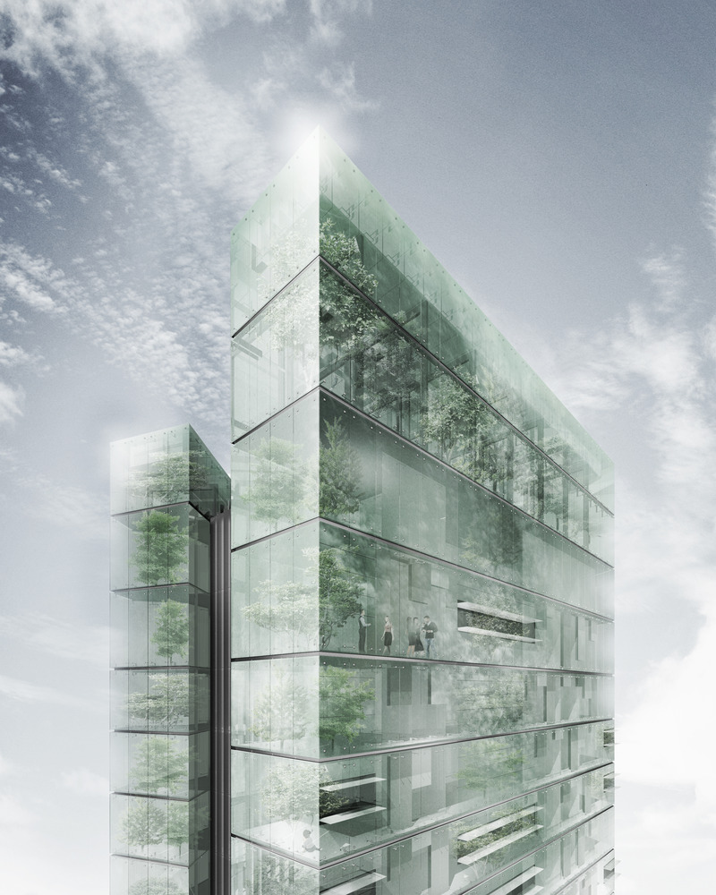 It expresses the volume as three ‘impossibly’ slender vertical glass billets, concealing the bulk within. The towers are expressed as clear, simple but powerful forms which highlight a singular idea, ensuring they stand apart as iconic and memorable structures within the complexity of forms of adjacent buildings and within the city as a whole.