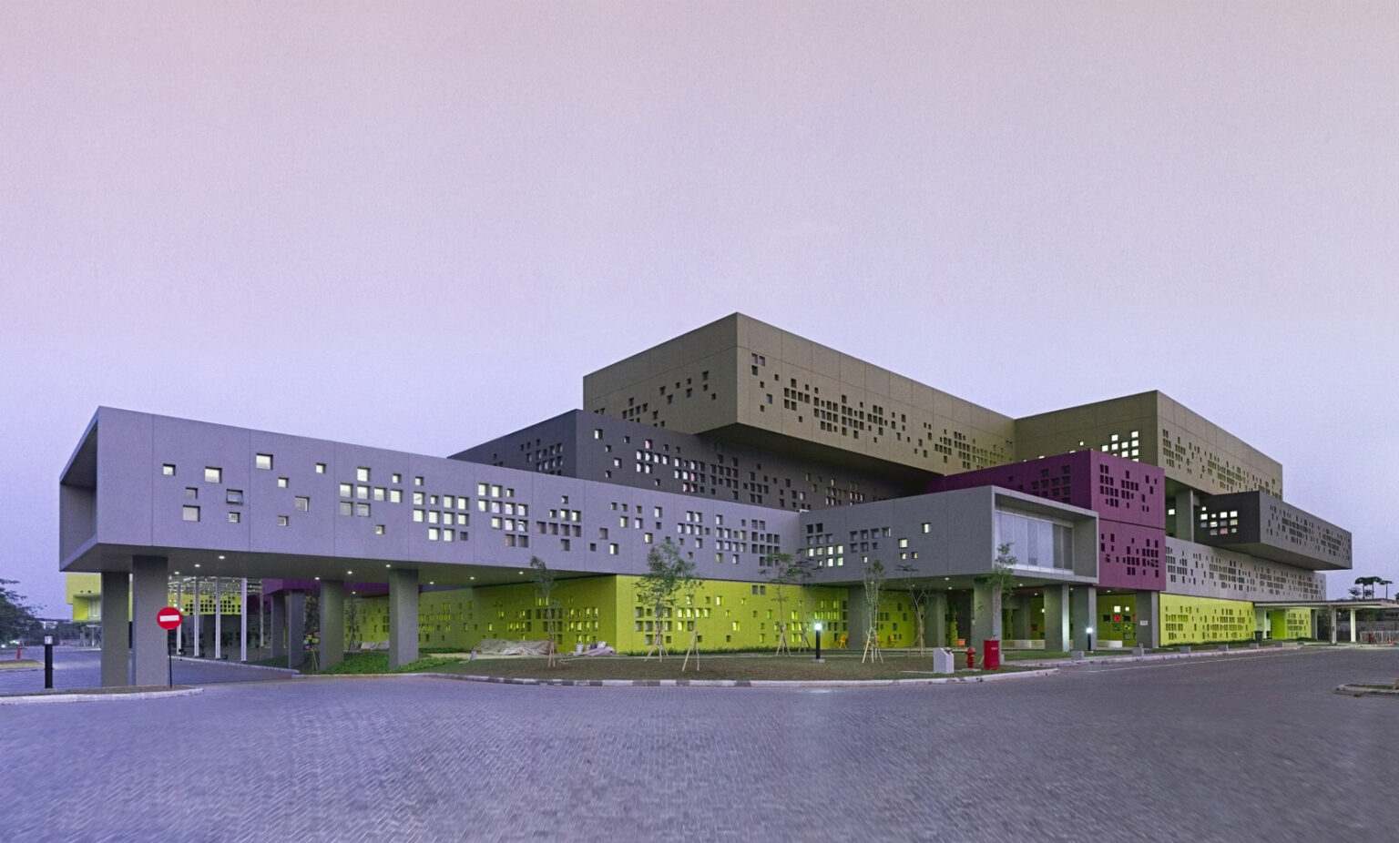 An addition to the Binus Secondary School, the project represents phase two of a three phase project. The facilities are designed to encourage children to be creative from an early age. The architecture draws on playground themes using colours and shapes reminiscent of Lego-like games and snaking elements that twist and turn to form a variety of interesting spaces.