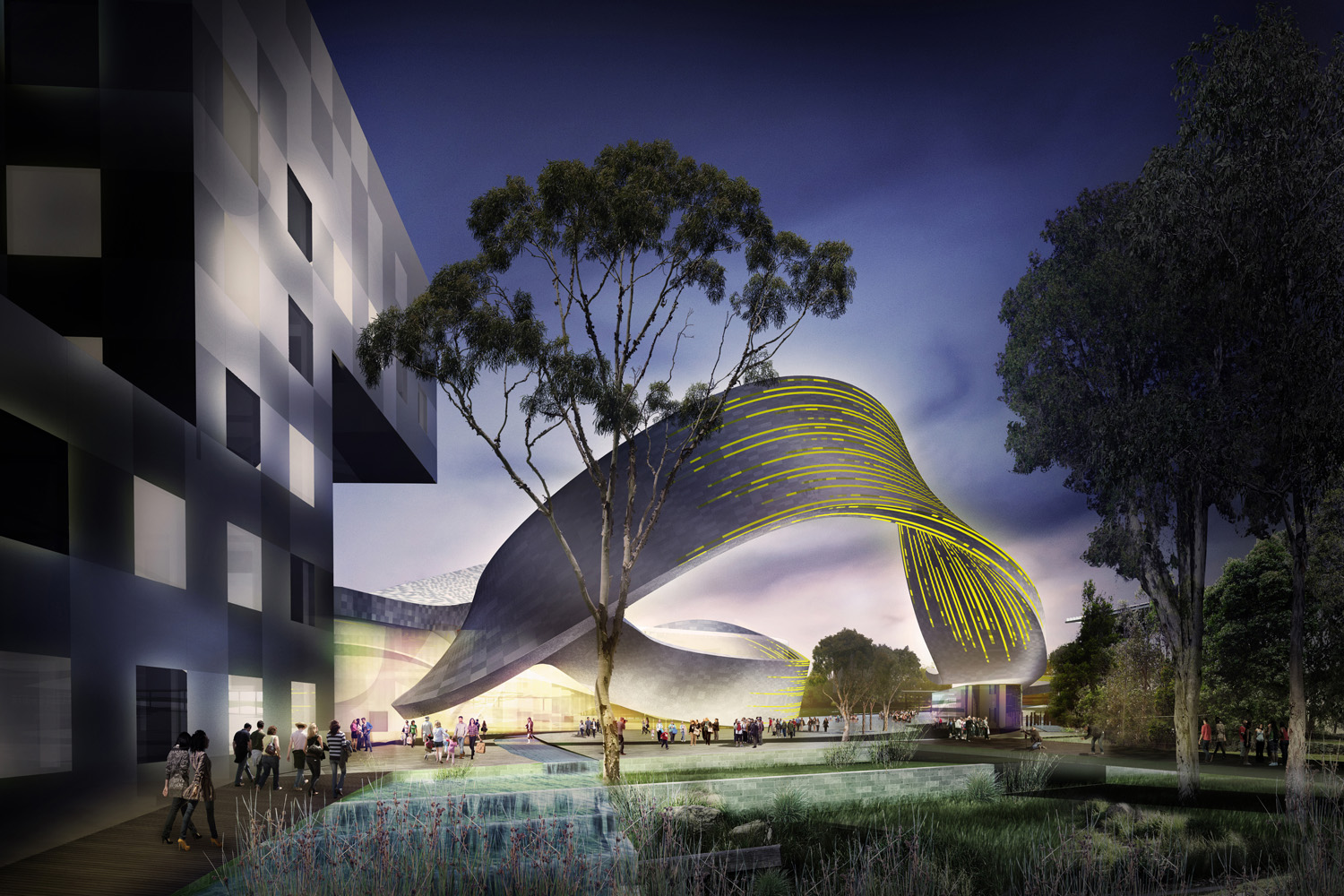 The design proposed a single theme – a continuous transformational ribbon – to tie the different uses together and create a unified identity for the cultural precinct, while also expressing the diversity and character of the different functions.