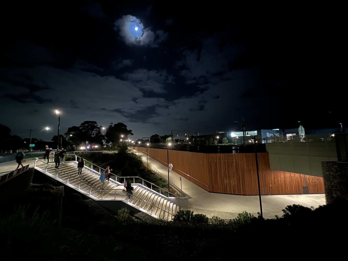 A key challenge for the project was developing an underpass design that would feel safe for users. The design addressed this through catering for multiple desire lines, delineating users with materiality, providing generous width spaces, opening up the excavation walls to maximise access to natural light and enabling clear sightlines for users throughout.