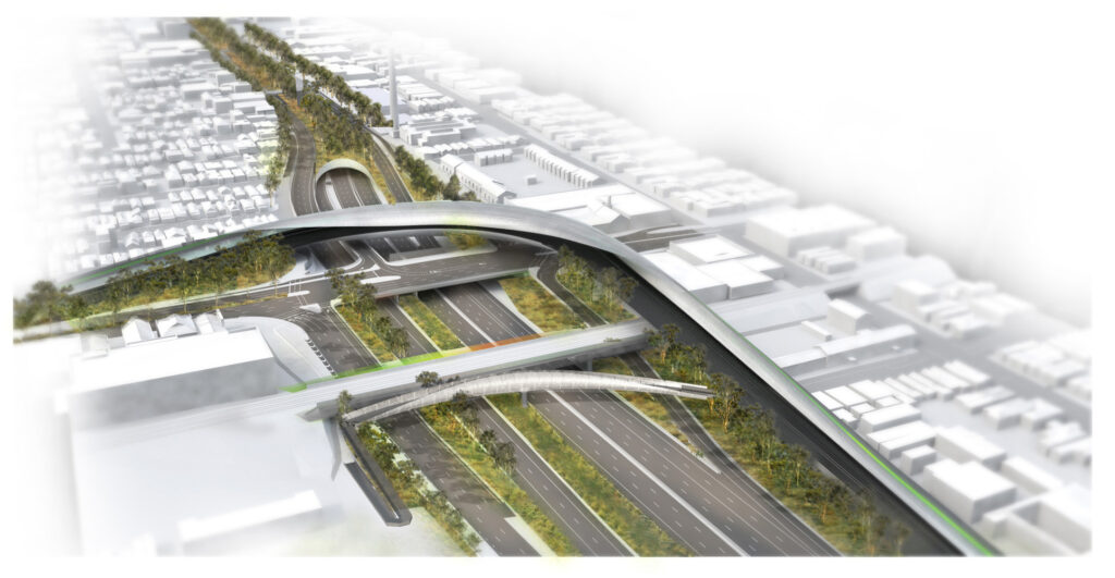 Denton Corker Marshall led the infrastructure architecture and urban design on the winning proposal for the $5.4 billion East West Link (EWL) in inner Melbourne.