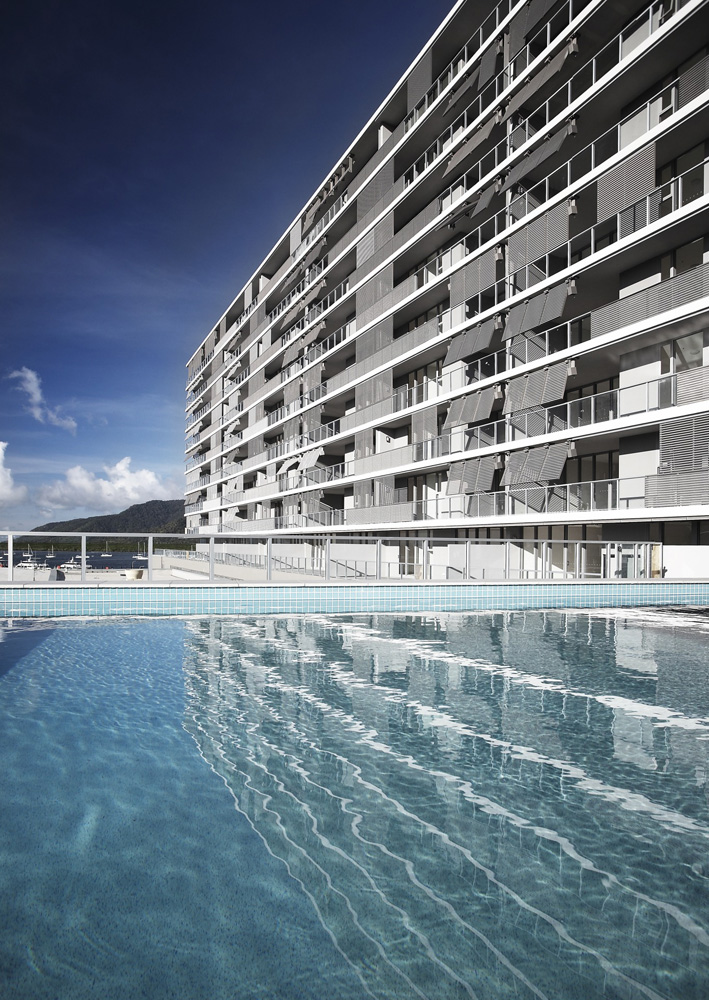 A contemporary landmark residential development on the Cairns waterfront including 200 apartments, hotel, swimming pool, restaurant, retail and cafe facilities.