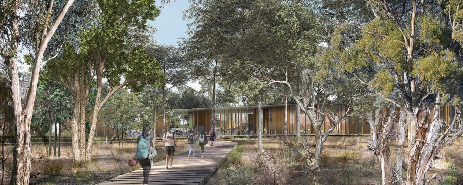 Our proposal is embedded carefully within the sensitive site. Its sinuous, organic form defined by it’s weaving around the existing trees and wetland landscape. Three distinct pavilions are positioned under a sweeping roof with covered accessways and breakout spaces between. The project accords with UN Sustainable Development goals and is designed to a 6 Star Green Star rating with a carbon-neutral energy solution, high water efficiency and extensive use of Western Australian sustainably sourced timber throughout.