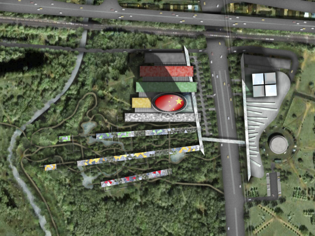 A trade and cultural showcase for China. The development incorporates two iconic towers, a low rise podium and an extensive landscaped Chinese garden with pavilions which is integrated into a wider river and woodland environment.