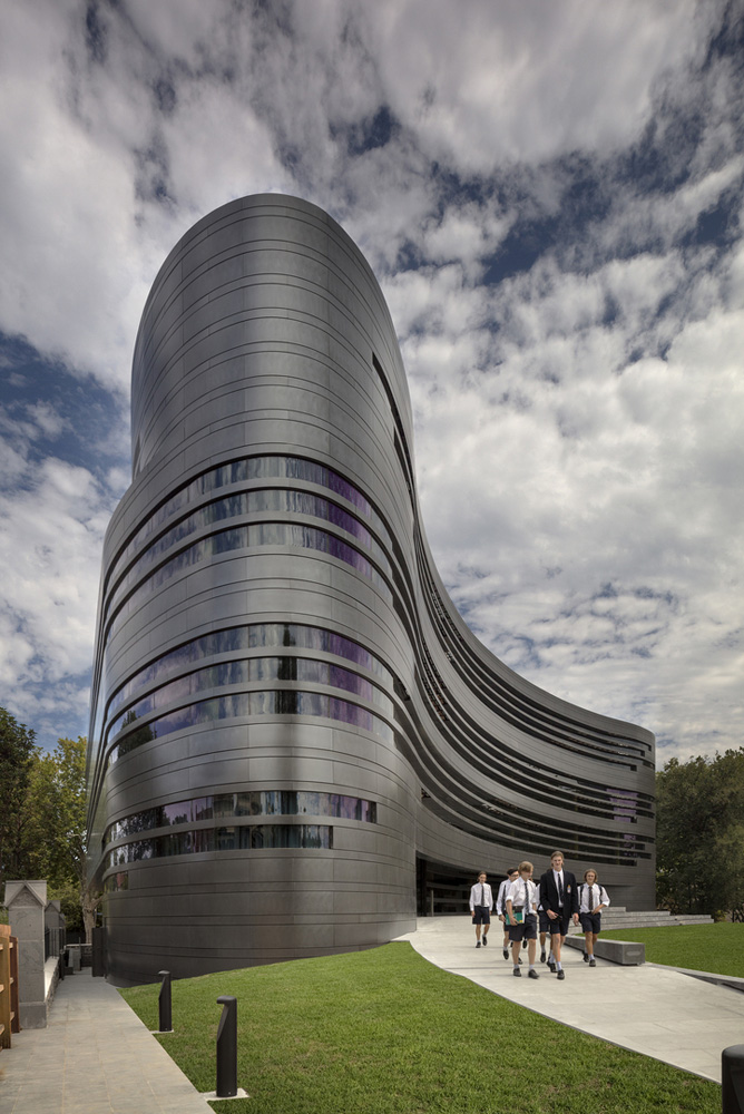 The centre, known as The Geoff Handbury Science + Technology Hub, is an innovative piece of architecture in both performance and appearance. Aesthetically, it is a singular, clear and simple structural form, sympathetic to the campus heritage.