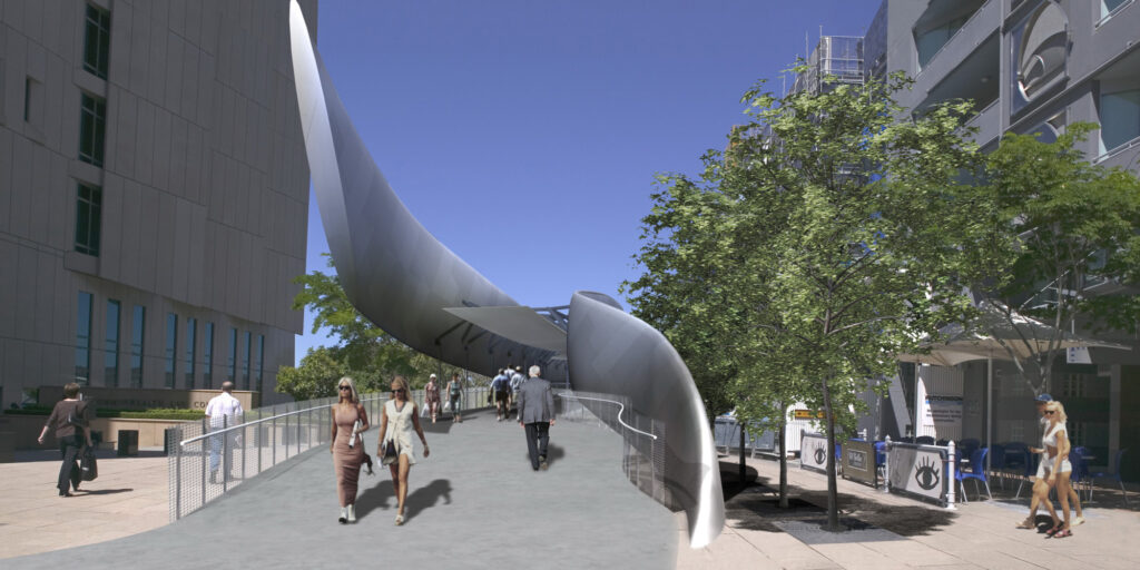 Competition design for a pedestrian/cycle bridge spanning the Brisbane River between the Brisbane CBD and the Arts Precinct.