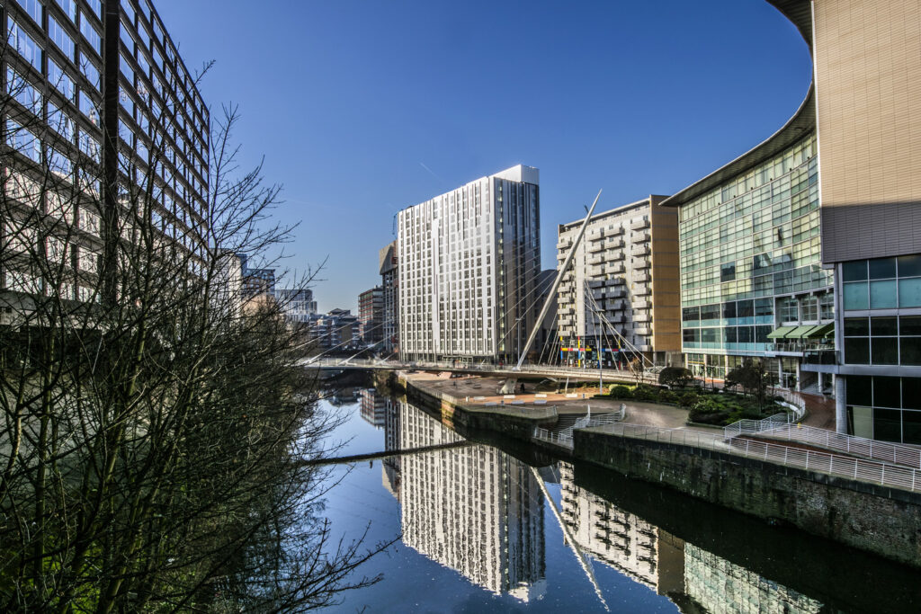 The ground floor residents’ reception and lobby area sits on a stepped, landscaped plinth and look down across the river. A cafe / retail unit located on a prominent south facing corner of the building, incorporates outdoor seating on the new public realm which will further activate the surrounding cityscape.